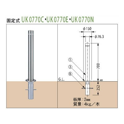 MEDOMALK(メドーマルク) ポストポール ステンレス製 研磨仕上げ 車止め [JNK-8CNG]【商品のみの販売です】【1万円以上送料無料】メーカー希望小売価格 63,000円(税込) 価格: 43,900円 レビュー評価:0.0 レビュー数:0 【固定式・φ76.3タイプ・ステンレス製(研磨仕上げ)】 ● キャップレス ● クサリ内蔵 ● ゴムライニングスプリング付 型名 JNK-8CNG サイズ φ76.3×t2.0×H700mm 仕様 クサリ2m内蔵 タイプ 固定式(埋込250mm) 重量 6.5kg 【施工図】 ※ イメージはJN-8CNG施工図です。 MEDOMALKポストポール研磨仕上げ[JNK-8CNTG] MEDOMALKポストポール研磨仕上げ[JN-8CNG] MEDOMALKポストポールJN-8CNG取替支柱 MEDOMALKポストポール研磨仕上げ[JN-8CNTG] MEDO Supported by 楽天ウェブサービス |